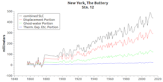 For another example, Stn. 12, The Battery, begins at a sea level value which indicates that the area has seen a continual trend of sea level rise of a significant degree (compared to some other areas).